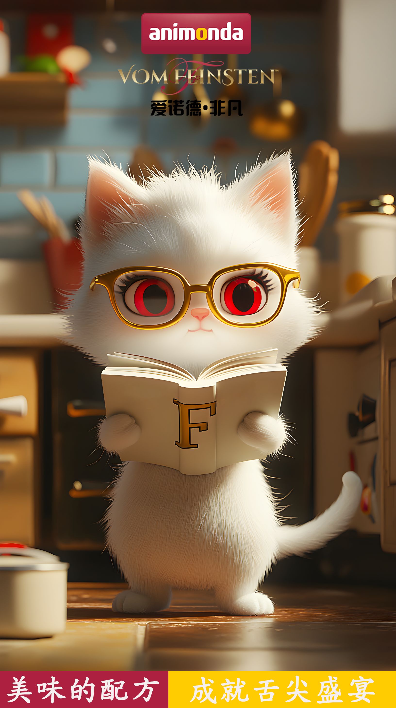 以白猫为主要形象,设计一个睿智的“顾问型角色”,表现出对食材和品质的挑剔感,与品...