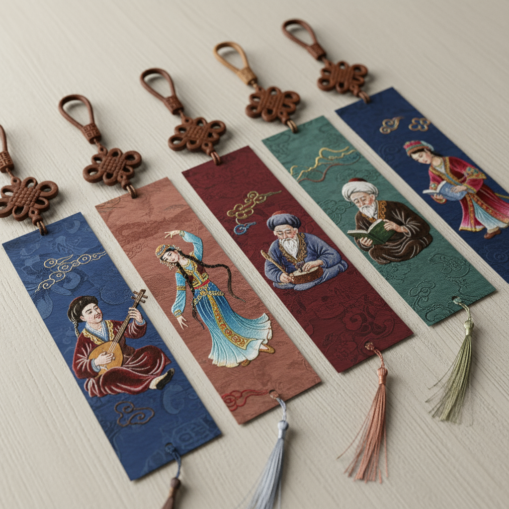 这组书签以“浙绣技艺+阿克苏文化符号”为核心,将浙江杭绣的细腻针法与阿克苏的民族...