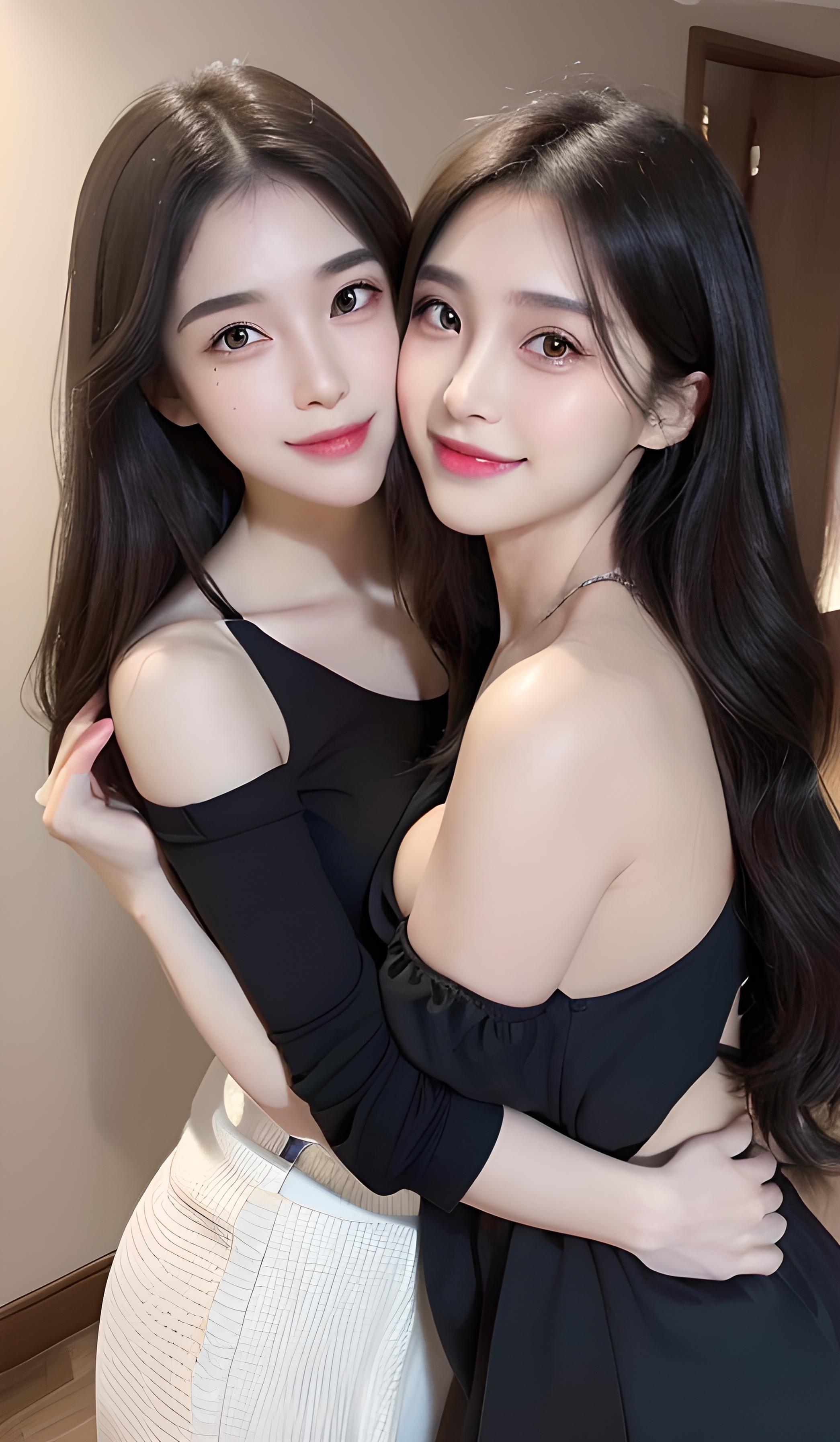 (((情侣))),情侣照,(((情侣装,热恋中的情侣,热情拥抱))),高细节,8k分辨率,超高分辨率,两位清纯漂亮的年轻女孩,粉色抹胸,百褶裙,清澈眼眸,(顺滑的头发,锁骨,精致完美的五官,最美的大眼睛,长长的睫毛,眼睛甜美有卧蚕,微笑,动态角度,极致画质,最高精度,精确完美的人体结构,大师级创作,杰作,(面部补光),身材高挑,笑容甜美,两位长发女孩,时尚的发型,一个栩栩如生的眼睛,一个明亮动人的眼睛,(((妩媚的眼神))),((精致,甜美的脸庞)),(自信、大方),明艳的气质,黑色卷发,柳叶眉,腮红,气质美女,气质优雅清纯,甜美的微笑,活泼,开朗,快乐,大笑,(不暴露),(((双人))),(((相互拥抱,相互倚靠,害羞微笑)))