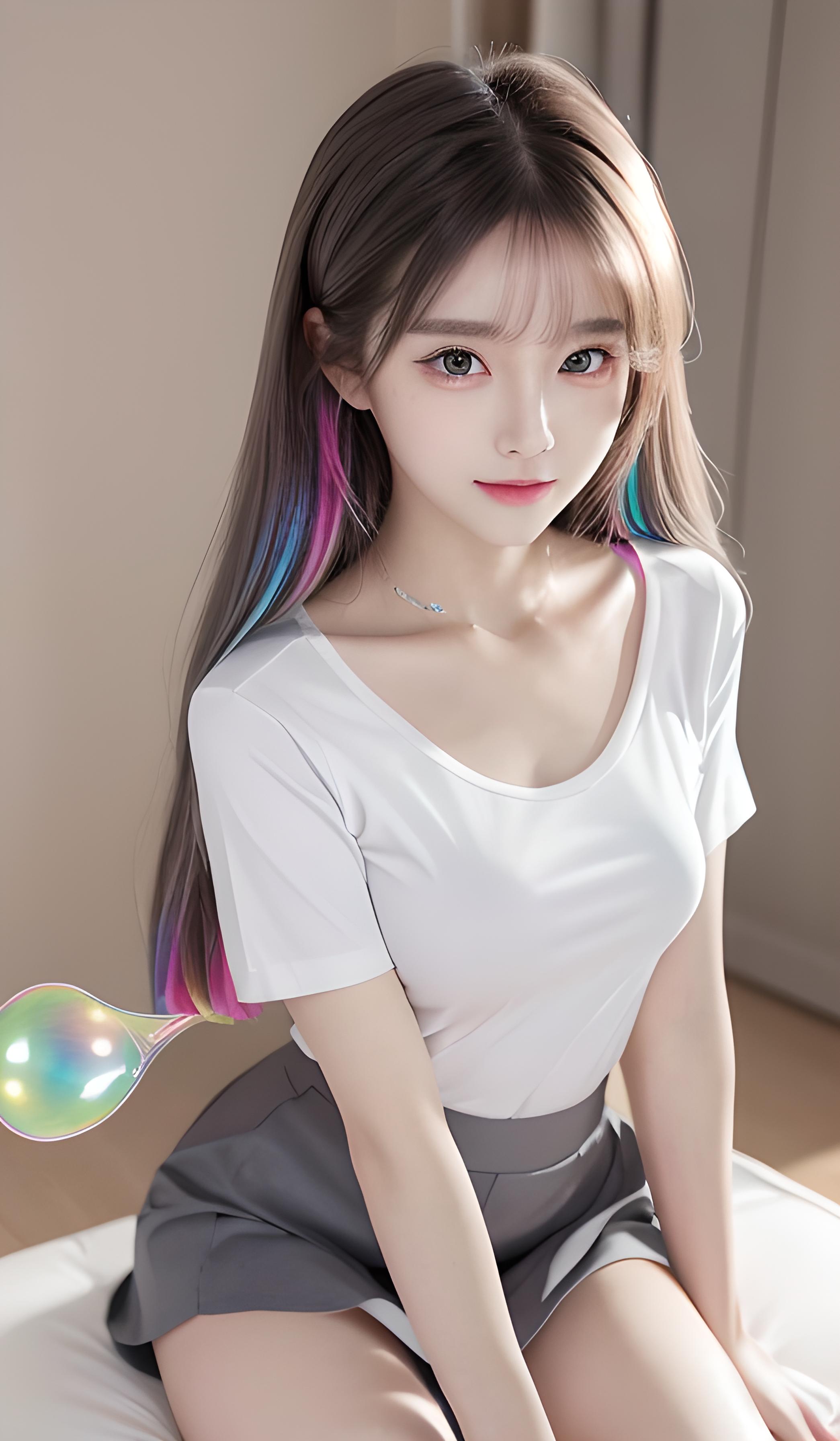 大师作品,高细节,超高分辨率,身材娇小,彩色清澈眼眸,顺滑的头发,精致完美的五官,最美的大眼睛,长长的睫毛,眼睛甜美有卧蚕,微笑,动态角度,,极致画质,高细节,最高精度,精确完美的人体结构,一个稚嫩少女,(灰色头发:1.2),顺滑的头发,锁骨,微笑,在学校坐在教室里,((衬衣校服_拼色)),(短裙_白色),清纯可爱,(靠近观者