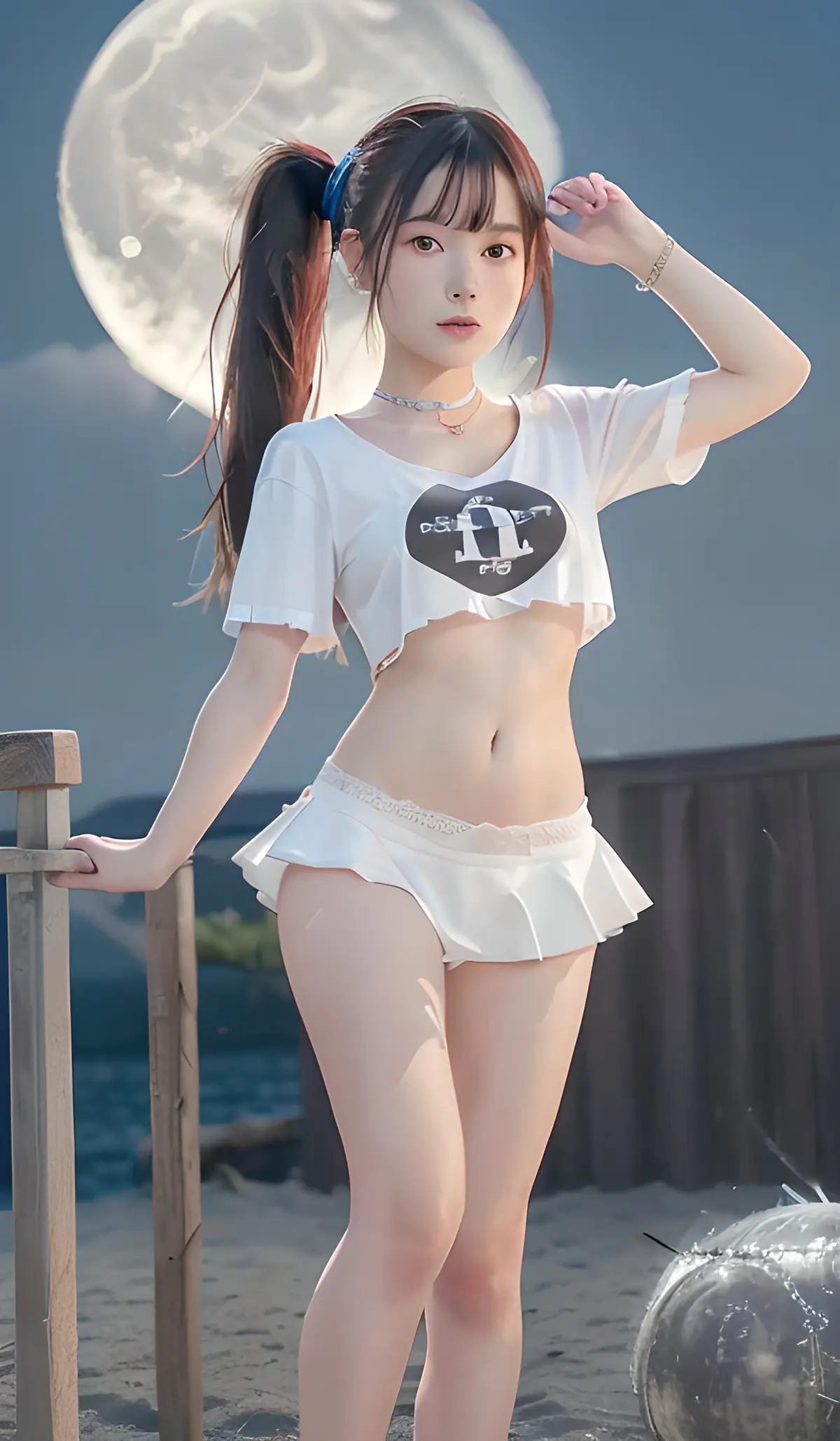 大师作品,最好画质,更高质量,高细节,超高分辨率,8k分辨率,景深,全景,长焦镜头,七分身镜头,精致的五官,完美的脸,女性,(((美少女))),单人,(水汪汪大眼),((头发过肩)),(红发),(马尾辫),(直发),(发带),(头花),(手链),(项圈),(戒指),(项链),(丝带),((百褶裙)),花边,(((((人字拖))))),((((腿部花边环)))),(站着),(动态角度),(面向观者),((夏天)),天空,酒吧审查员,((诱人笑容)),(((交叉刘海))),(((编织马尾))),((((T恤)))),((((夜晚)))),(((((满月))))),((((荒地)))),((霓虹灯))