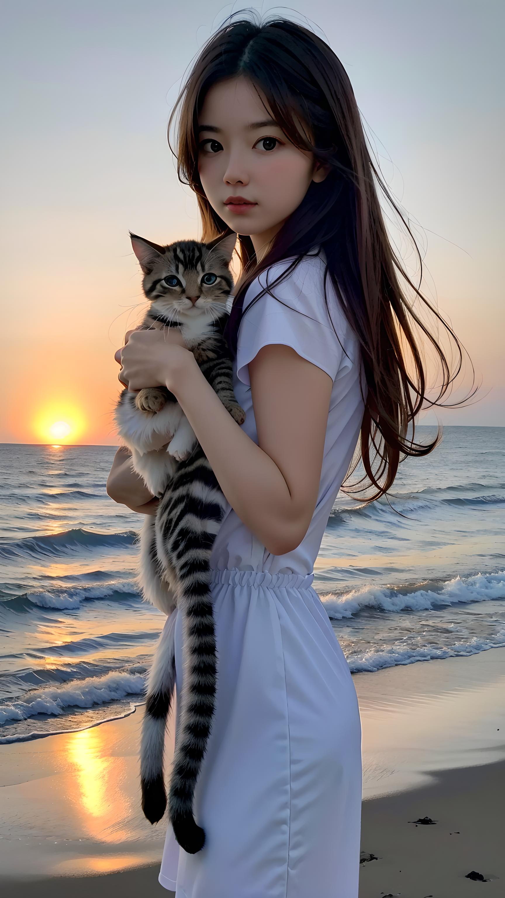 美女与猫咪
