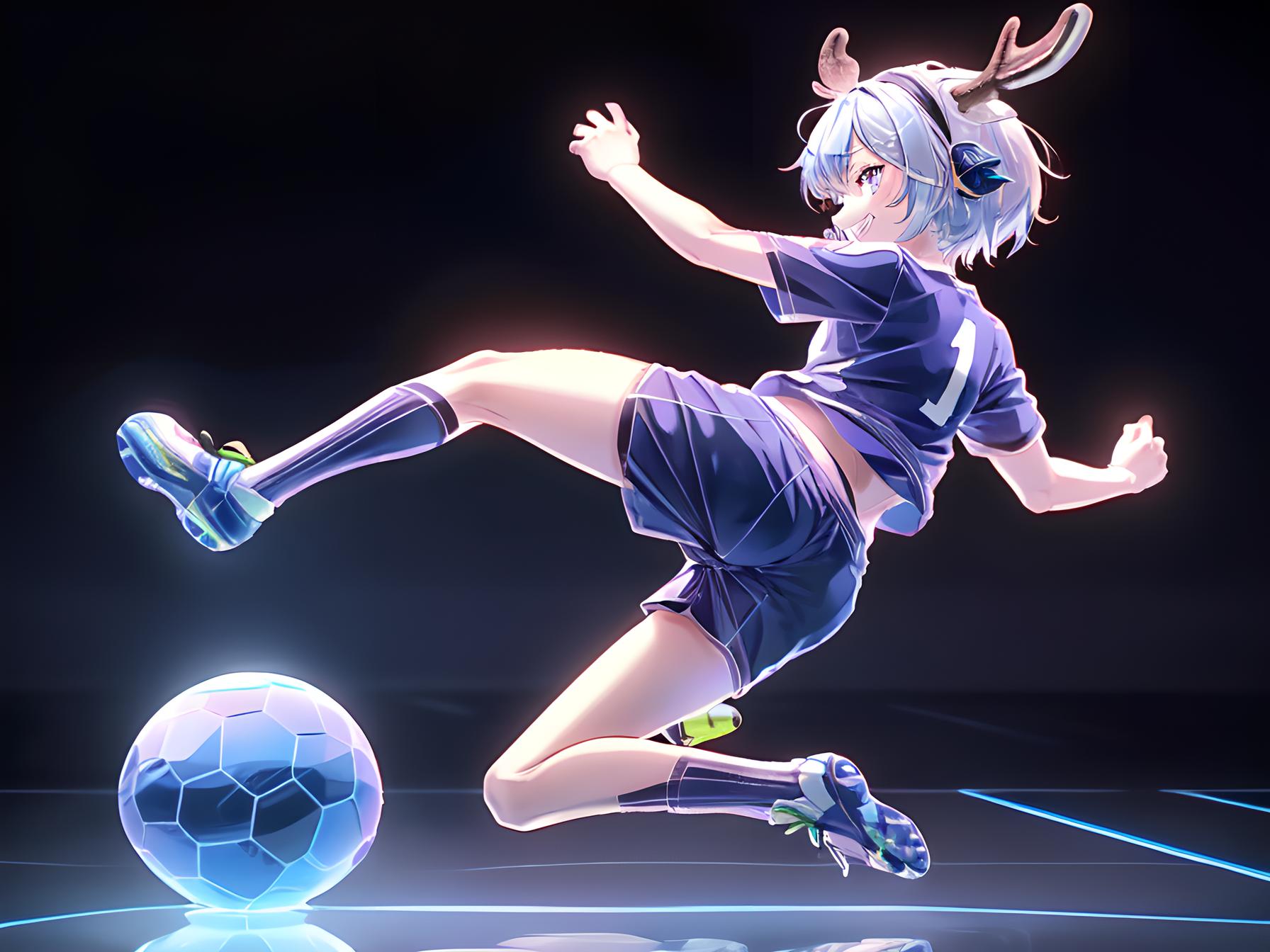 头戴鹿角,脚下踢球,全息解析,科技与运动的结合,鹿城与亚运的相遇