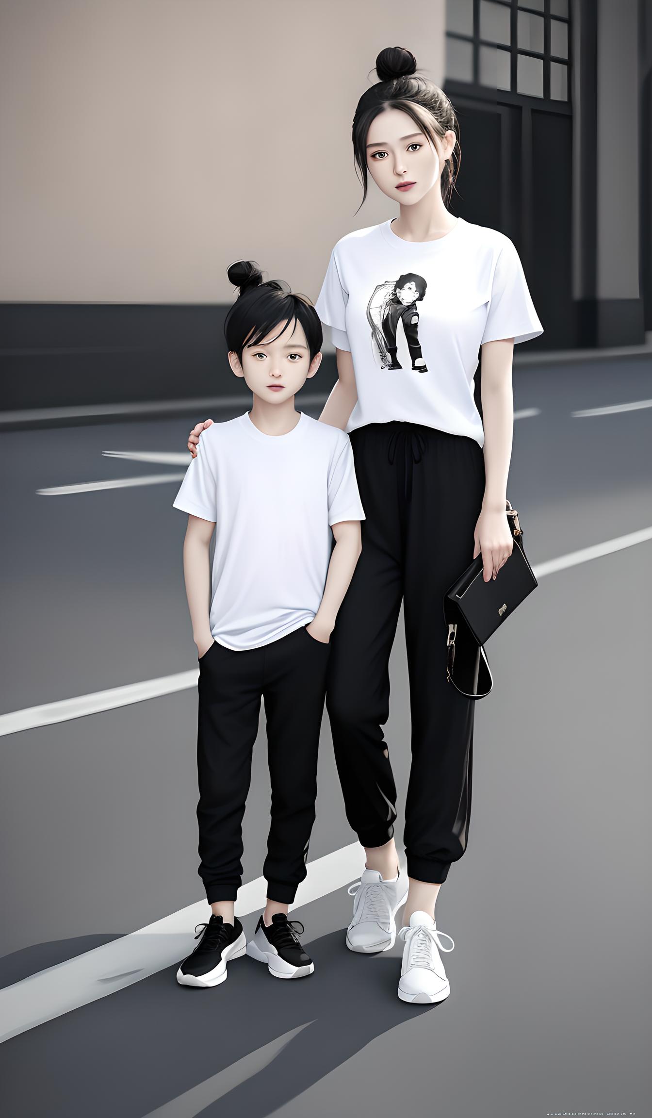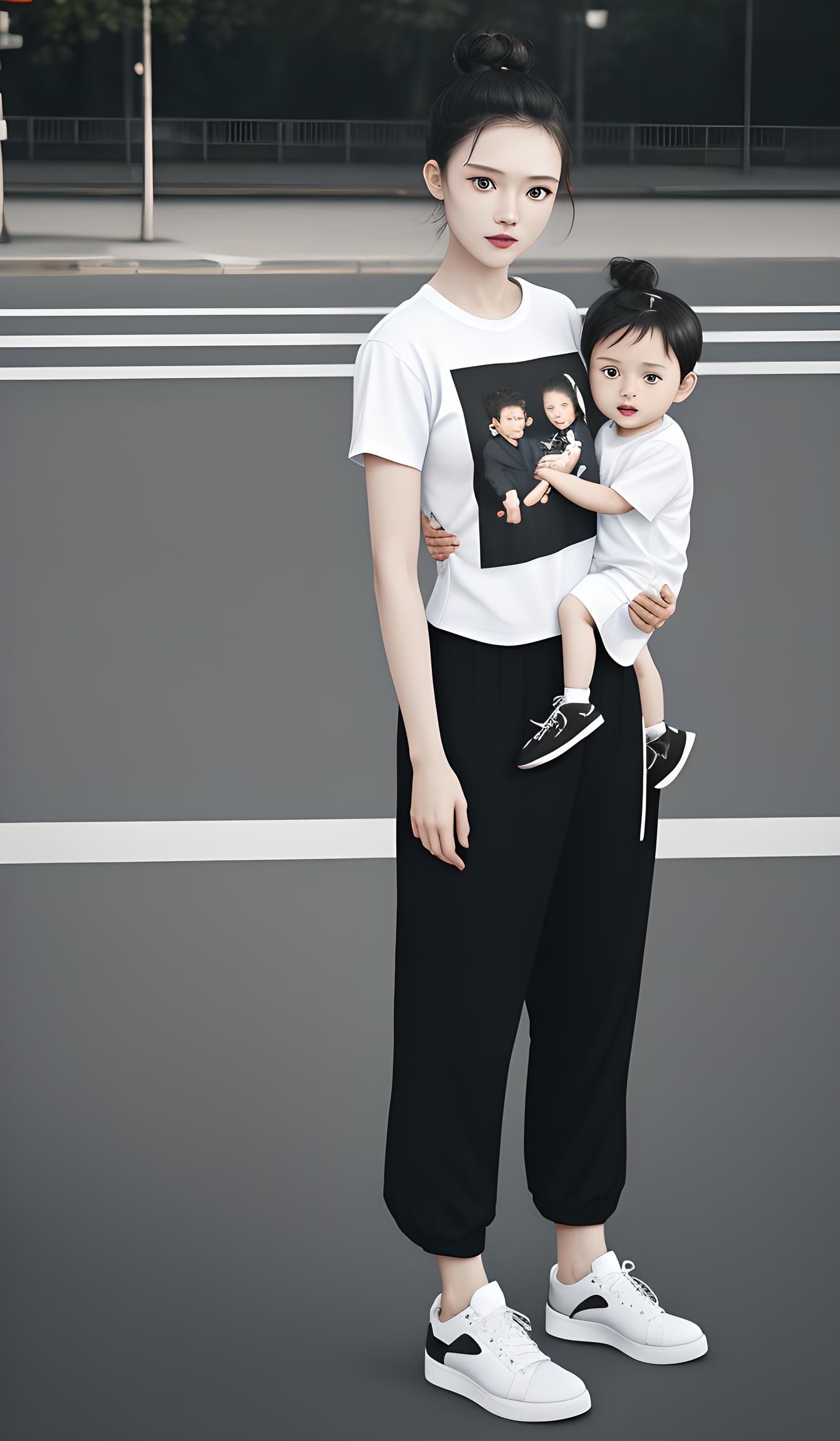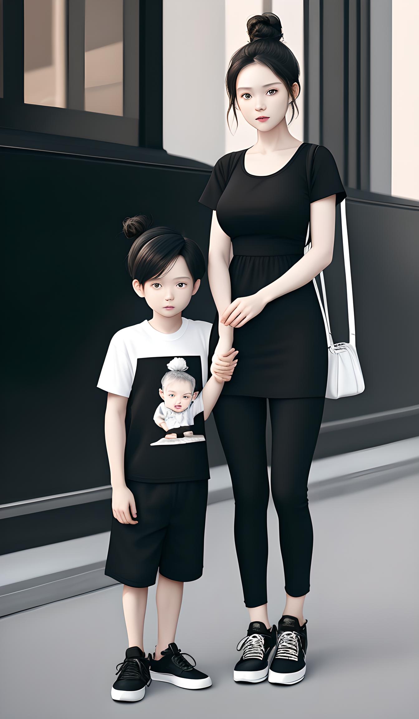 漂亮母亲和孩子