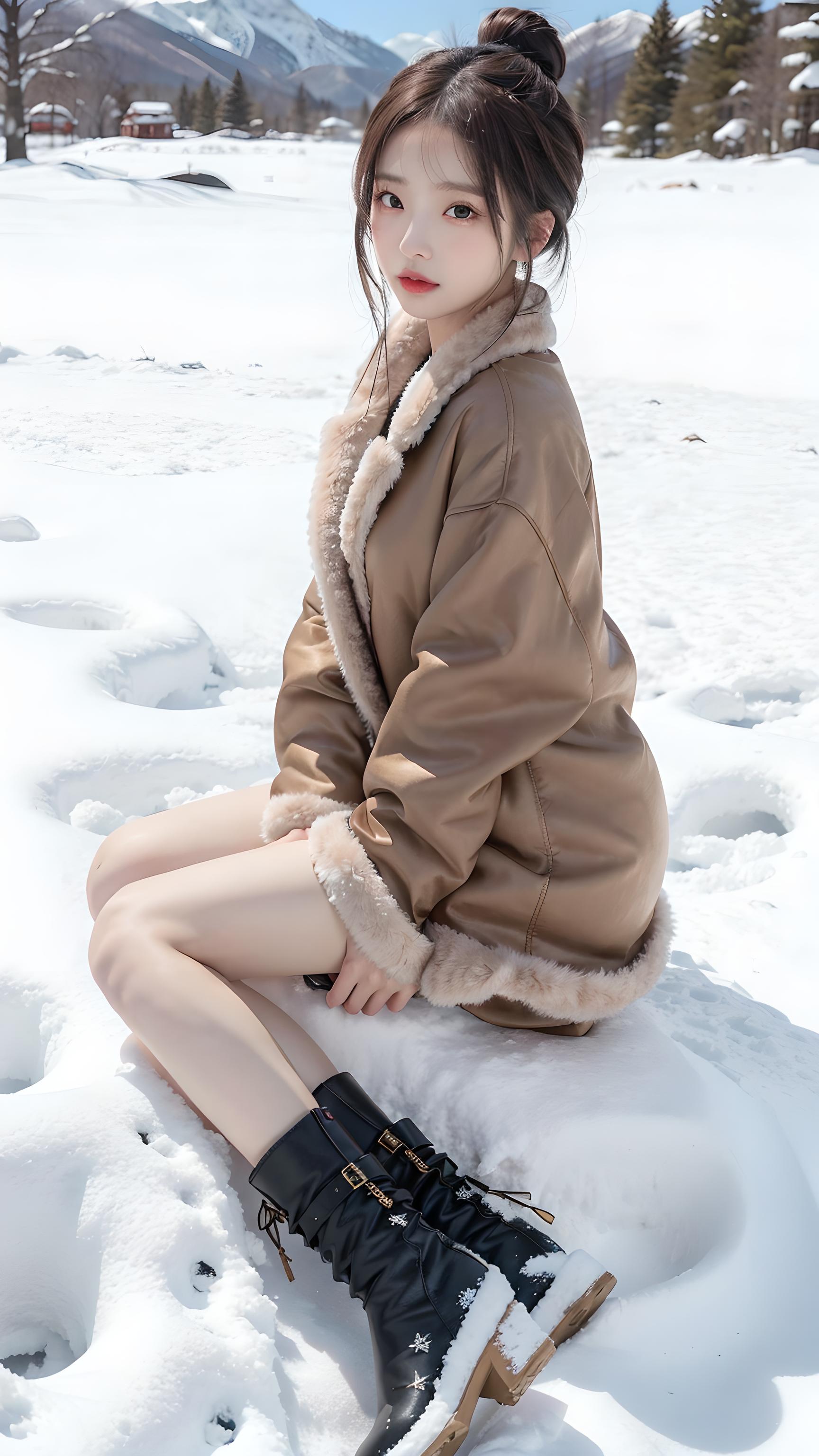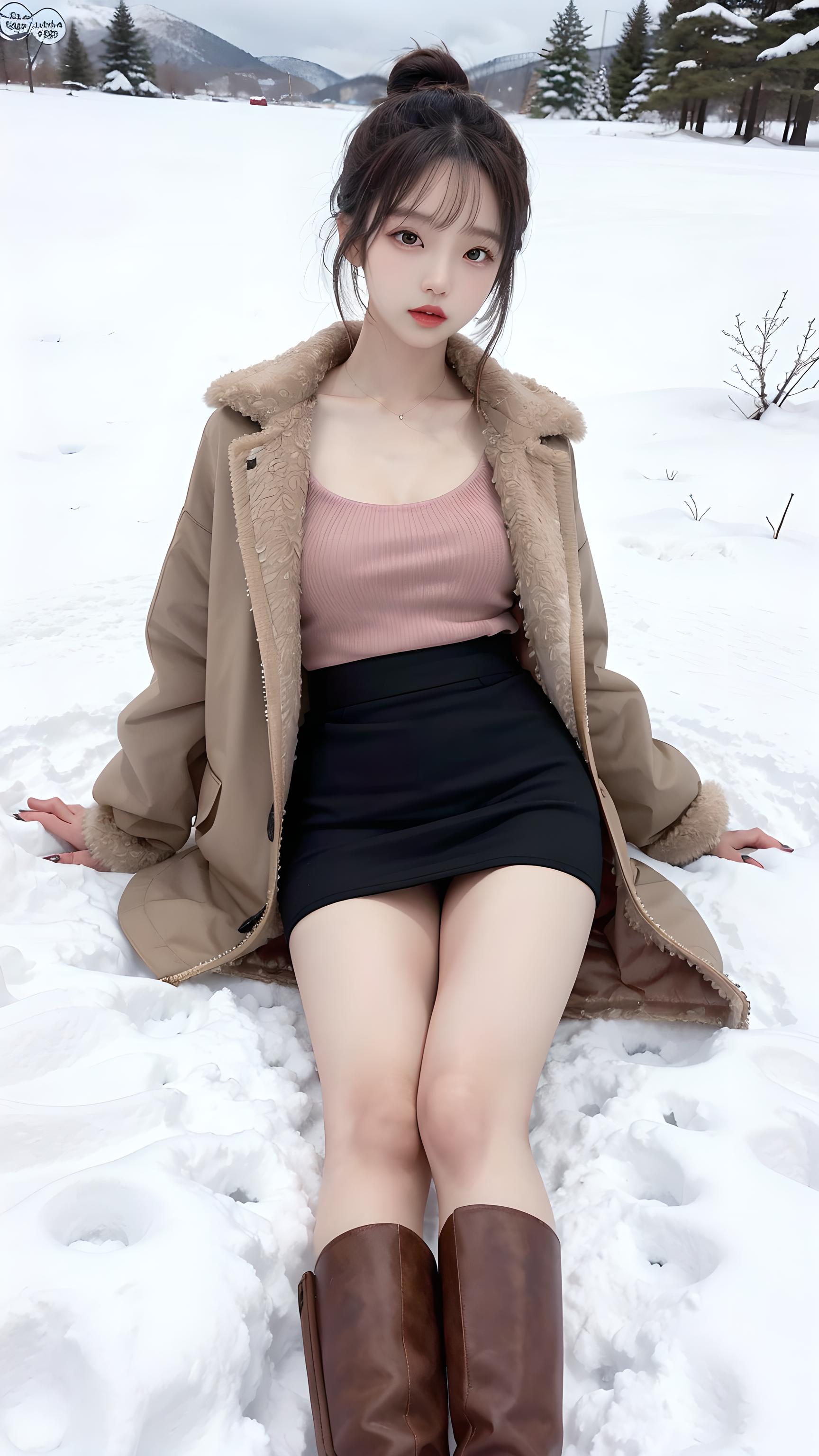 侧卧雪堆遍满四山中