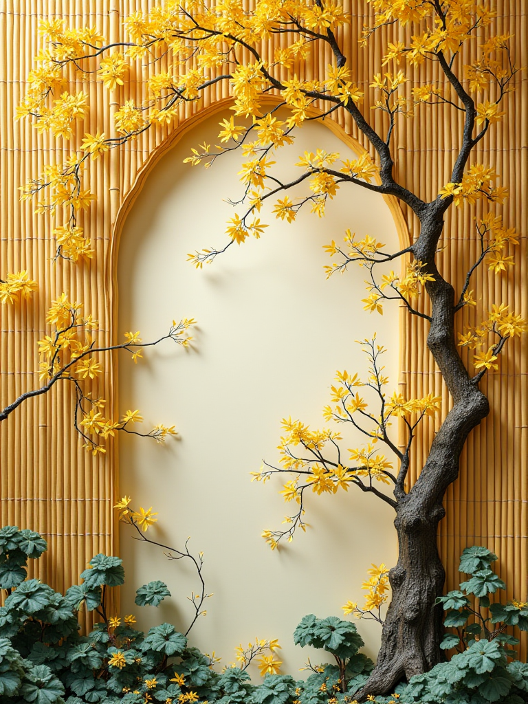 以胡杨与毛竹为核心元素,构建家居屏风形态