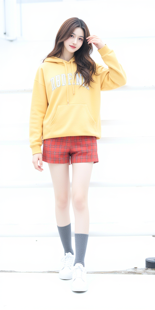 格子短裤女孩