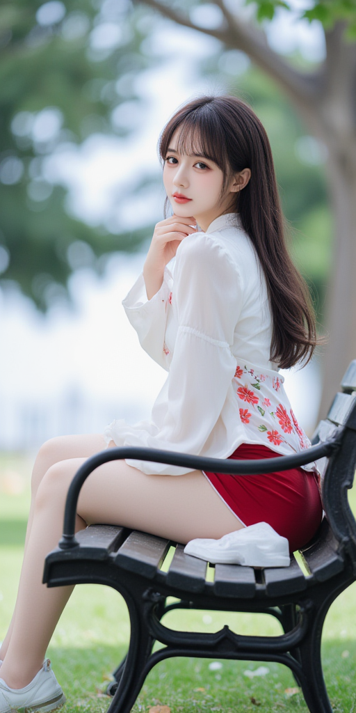 公园长椅上的女孩