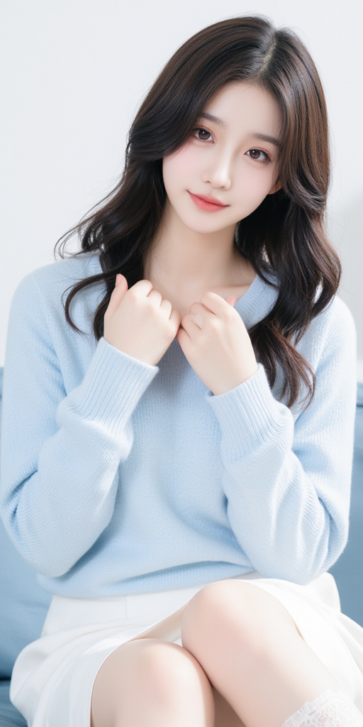 蓝色毛衣女孩