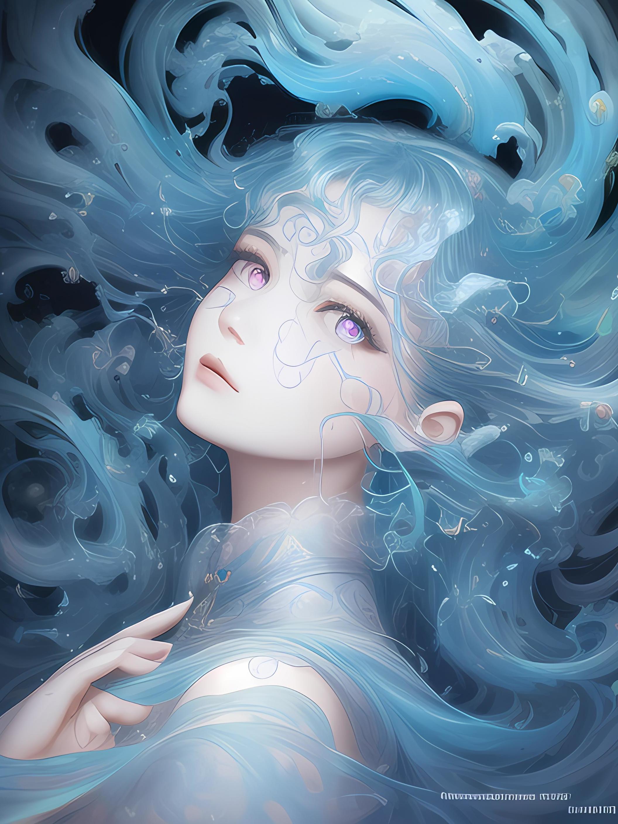 (((1girl))),流动的长发,水,环绕,霓虹灯,油画,丙烯画,色彩艳丽,色彩斑斓,波纹,超现实逼真,顶级 CG 渲染,最高画质,杰作,8k,工笔画, James Jean , Rutkowski , fluid acrylic ,渐变, liquid rococo fractal , Artgerm , WLOP , Rutkowski , fractal , octane