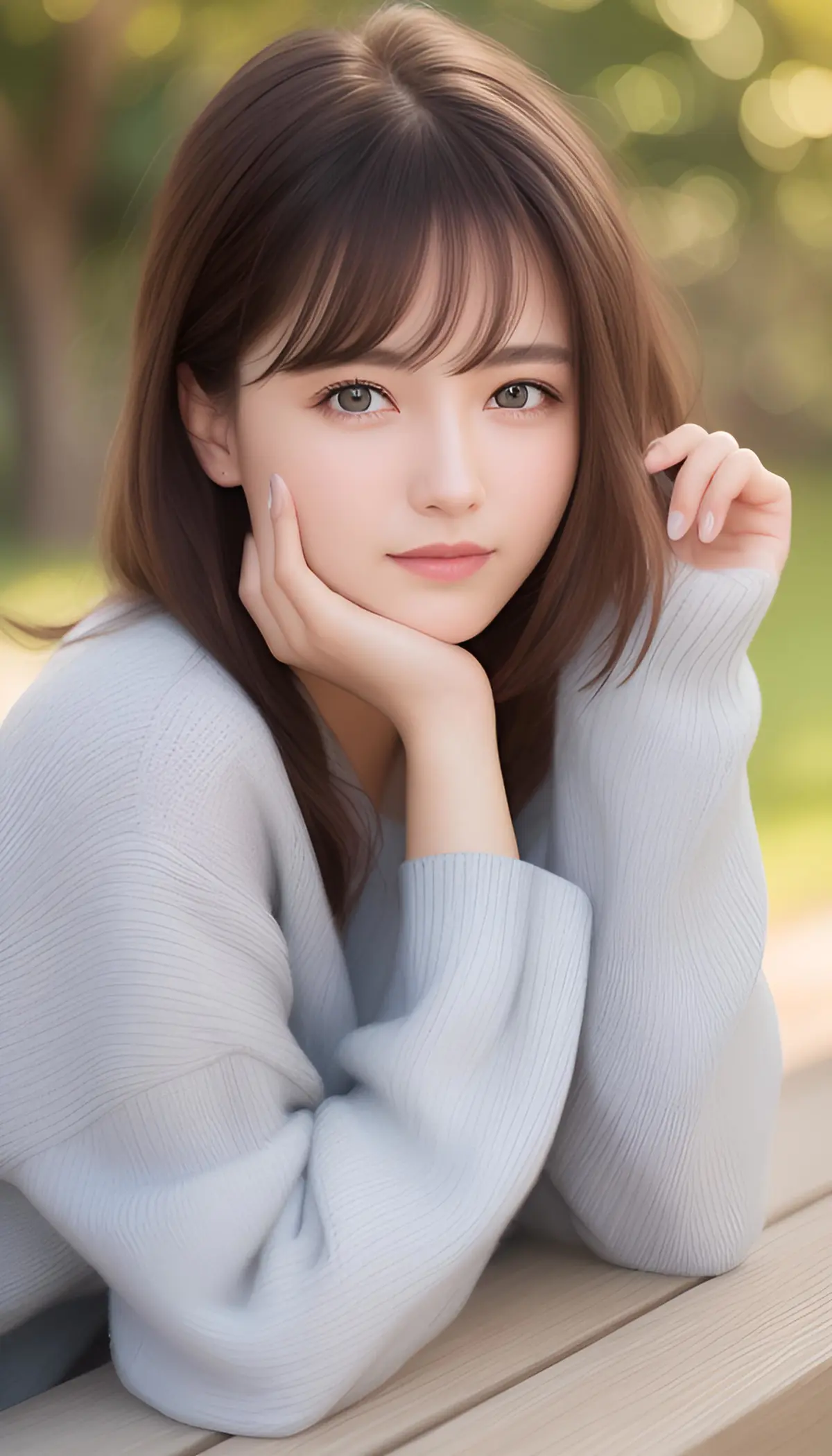 Master works, the best picturequality, higher quality, high detail,ultra high resolution,8kresolution, depth of field, adelicate and beautiful girl,beautiful facial features, lazy andloose sweater, portrait mode,sunshine, warmth, Tindal effect,film light, lazy look, smile,stunning, side,