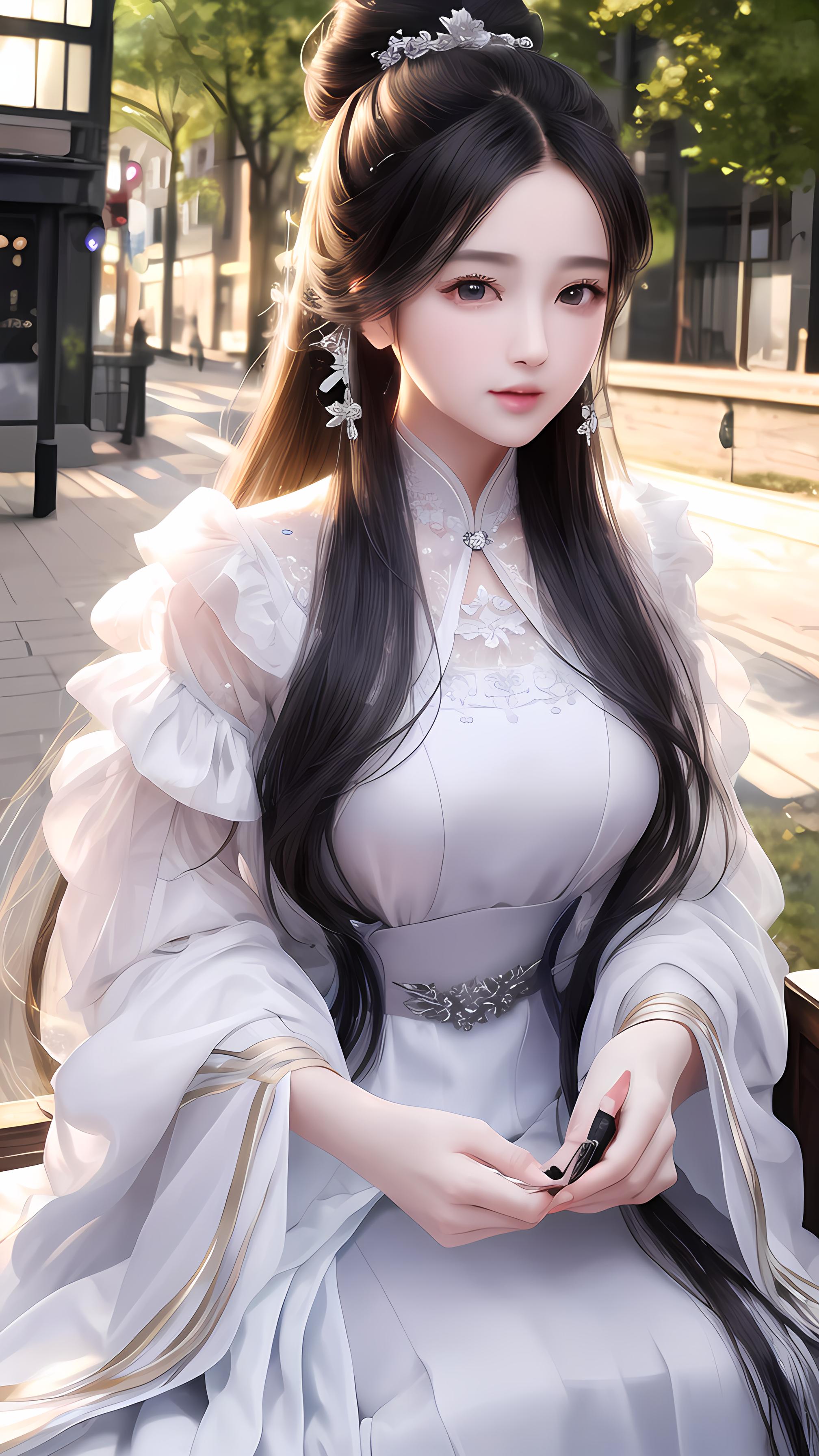 极致漂亮细腻的美少女,街上人来人往,明亮的大眼睛,(锦衣卫装扮),逼真写实的,精致完整的五官,漂亮温柔美少女,飘柔顺滑发丝,高马尾,迷人气质,极端细节,逼真细节,极其细节的8k壁纸,大师作品