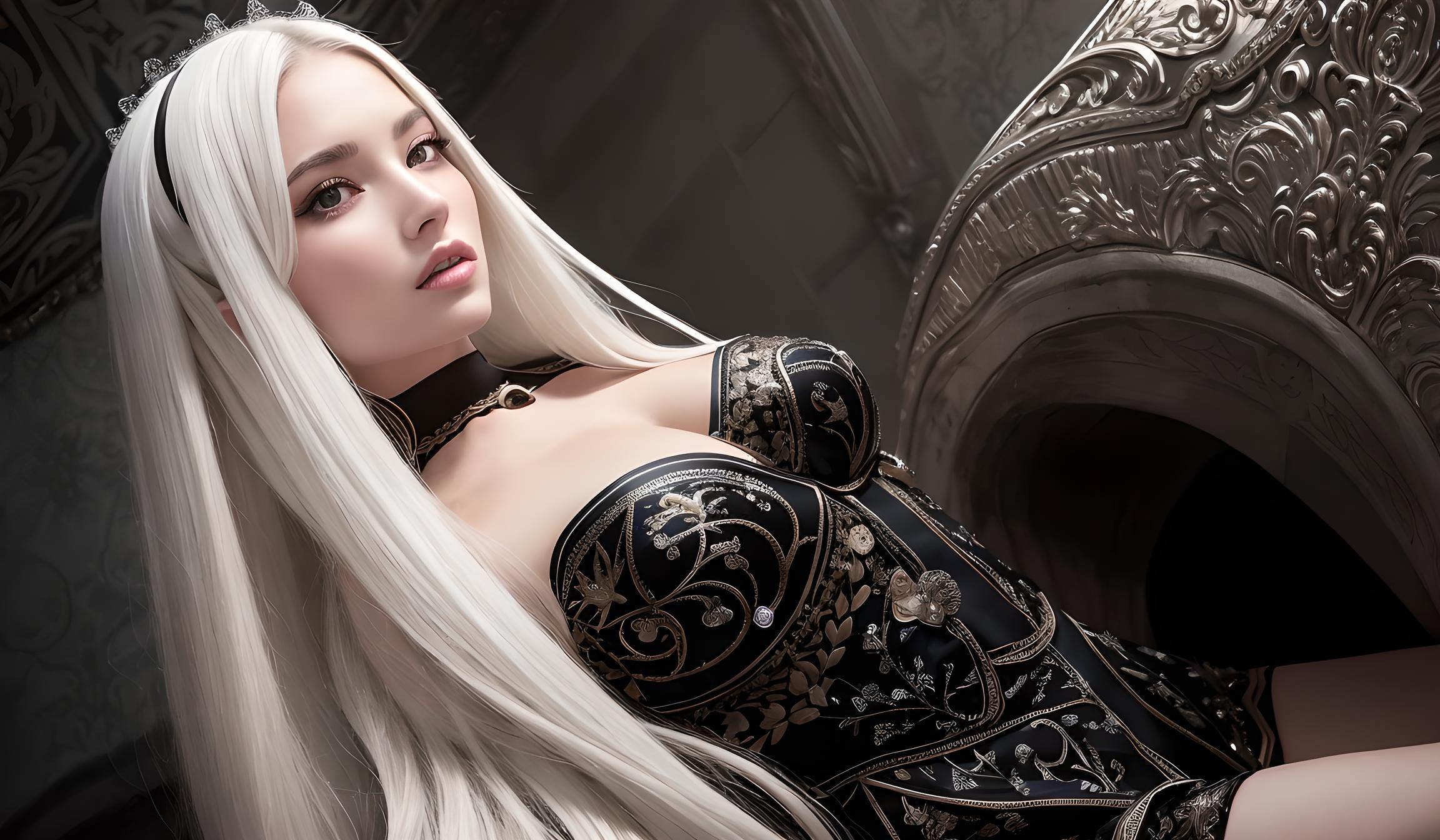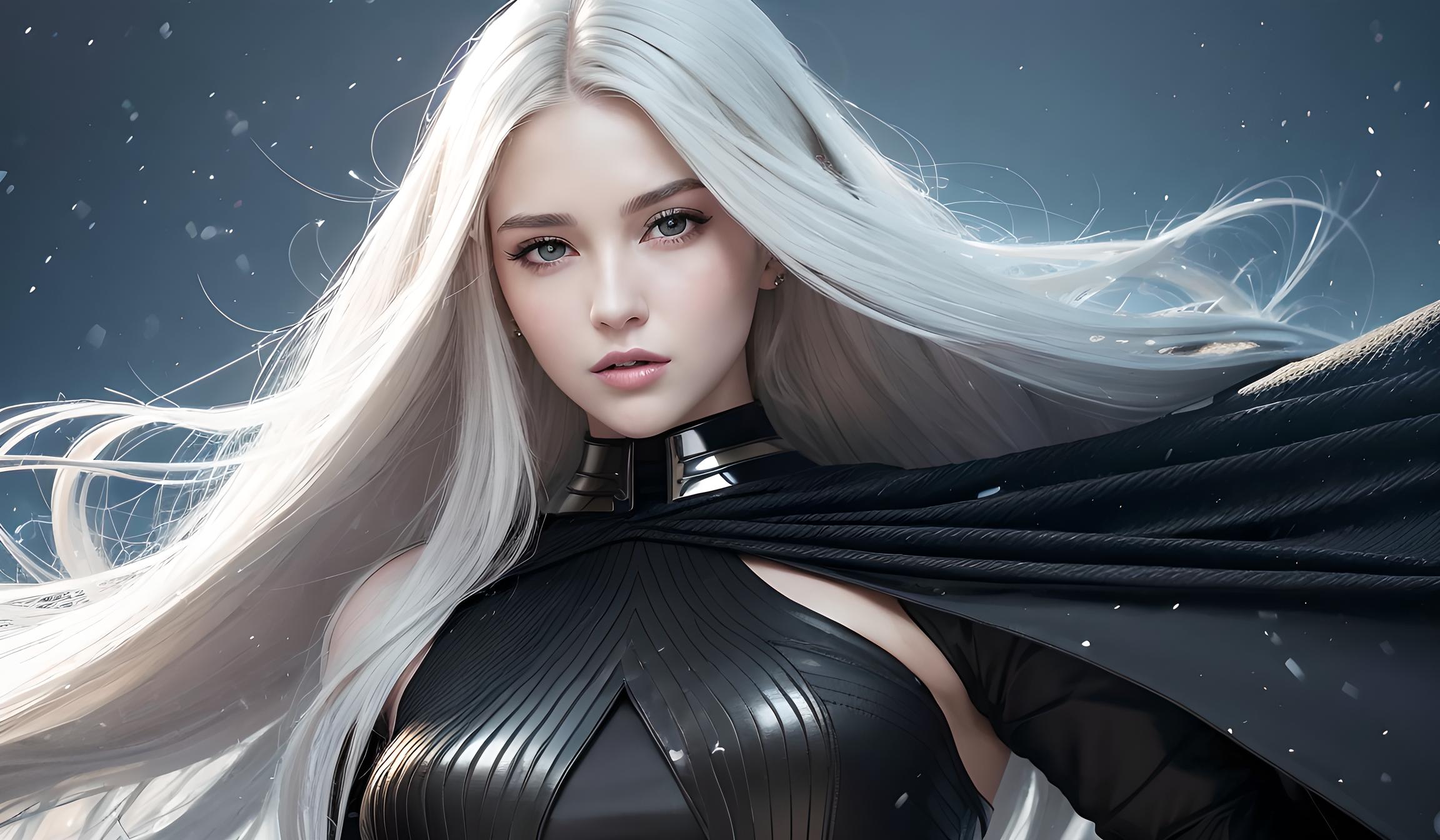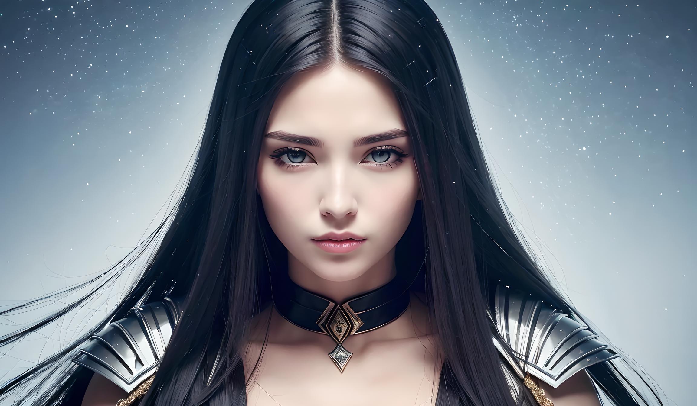 她的铠甲上闪耀着金属的光芒,如同夜空中的繁星一样美丽。每一个细节都展现出她的高贵和神秘,让人无法抗拒她的魅力。