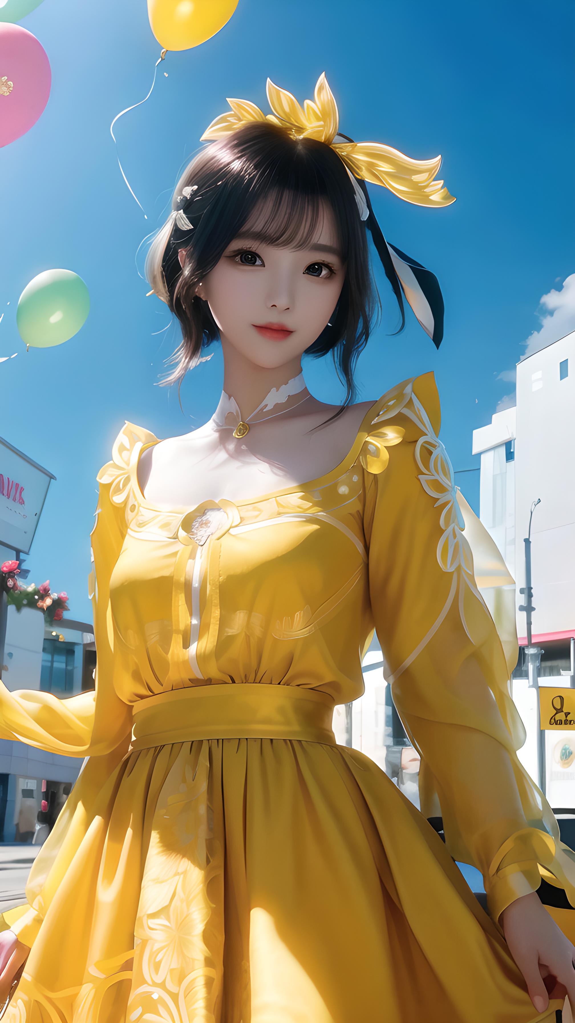 黄色连衣裙美女