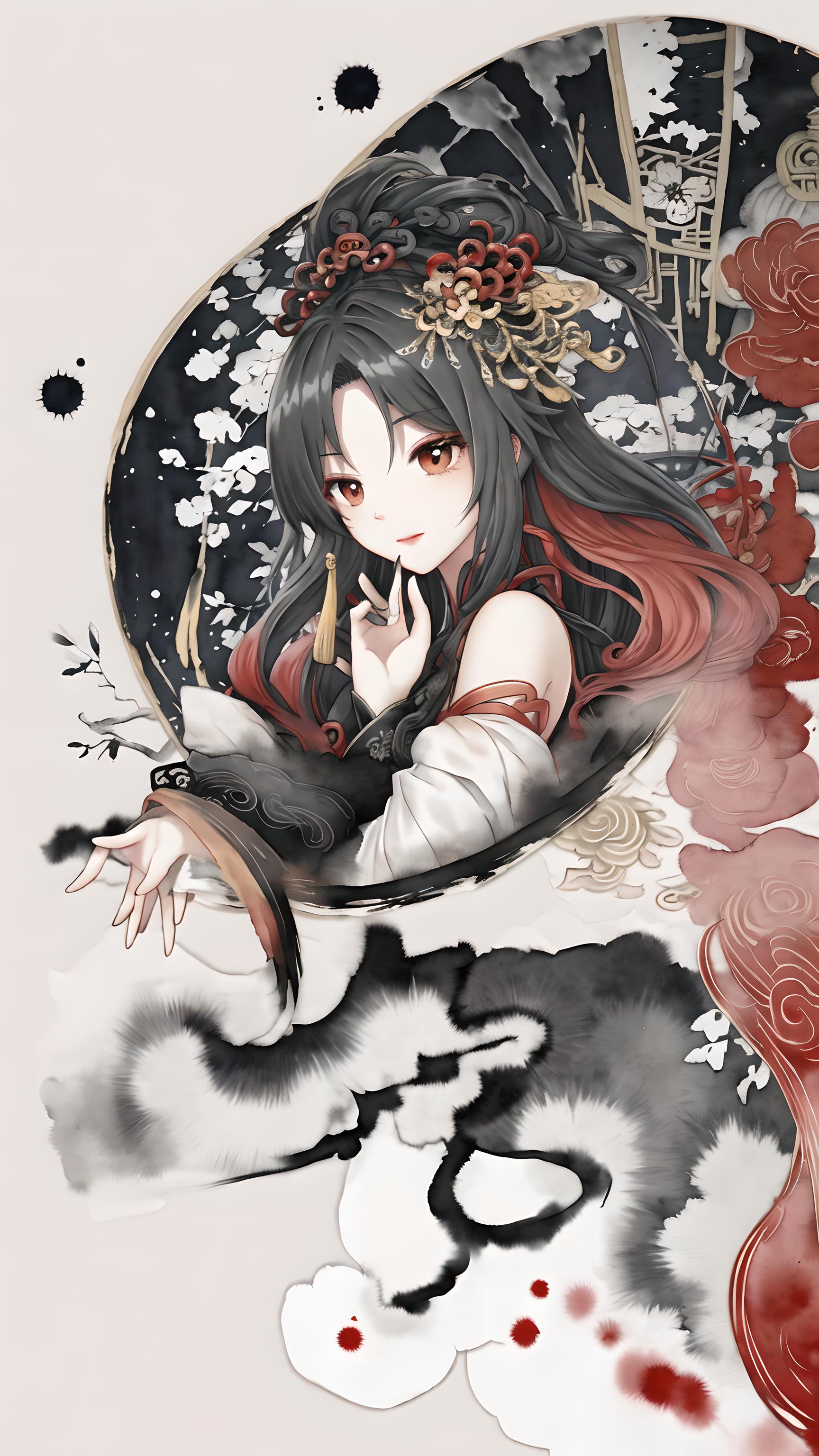 一个美丽的御姐,五官精致,拥抱,胸部大,红色薄纱汉服,古风,露肩,美女,长发,可爱美女,highly detailed, illustration, cinematic lighting,精美的中式长发,凌乱发,全身,雪白