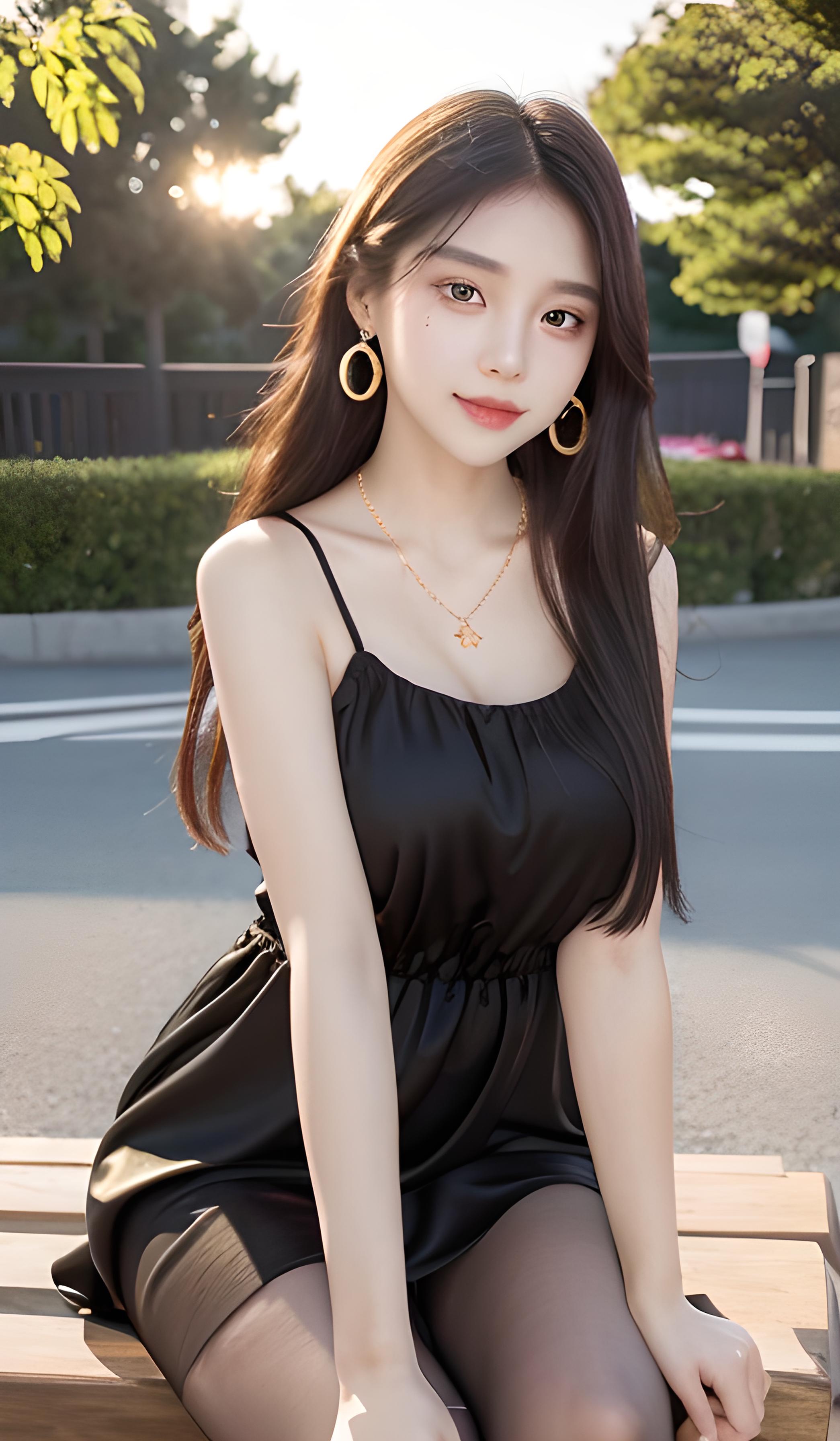 五官精致最美女孩,大眼睛吸引人,微笑,在游乐场玩,黑色飘逸的过肩长发,((一袭金色华丽的薄纱长裙,裤袜,项链,耳坠,珠宝首饰,金色渐变红色氛围,坐过山车上)),春日暖阳下,繁花似锦,细腻白皙的皮肤,丁达尔效应,