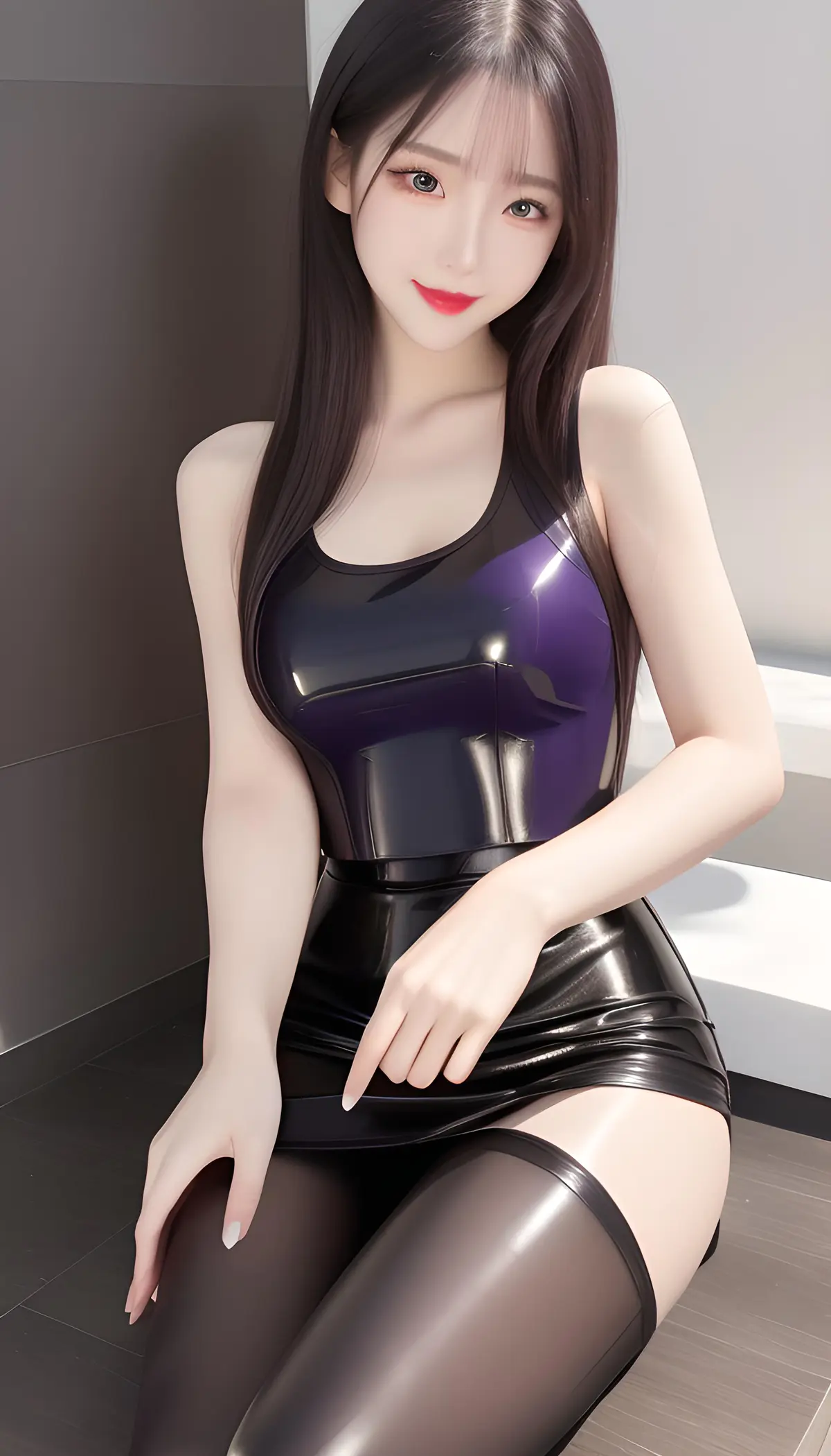 咒语(Prompt): 高清,青春靓丽的少女,8k画质,最佳画质,巨胸,丝袜带字母,细腰,精致五官,非常可爱,水汪汪的大眼睛,紫色瞳孔,眼影,长睫毛,脸红,红色嘴唇,,银白的头发,短裙,皮裙,皮裤,黑丝皮裤,全身特写,(现代),超现实,阳光明媚,细节光线,优雅的姿势,(latex dress,hotpants,tank top),((grey_pantyhose)),细节丰富,微笑,害羞,可爱,动人美女,